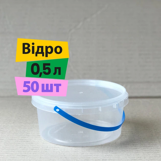 Відро 0,5 л з кришкою (50 шт), харчовий прозорий пластик