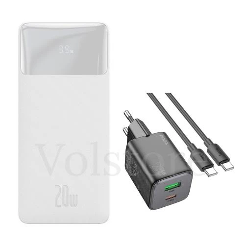 Комплект Павербанк Baseus 10000 mAh 20W 3A та Мережевий Адаптер Hoco Almighty N41 20W Type-C to Type-C Павербанк зі швидкою