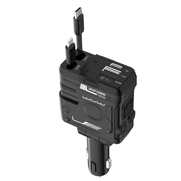 Автомобільний зарядний пристрій зі швидкою зарядкою 36W та кабелями Type-C+Lightning WUW C236 |USB+Type-C, 36W| Чорний