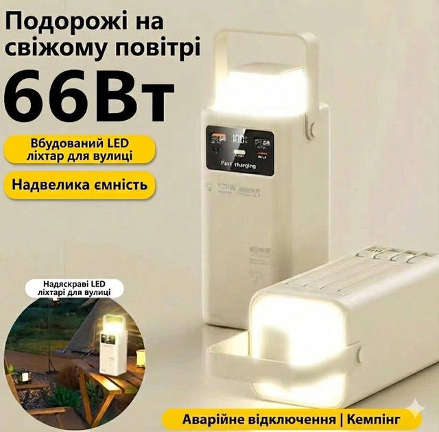 Павербанк PowerBank із швидкою зарядкою та кемпінговим ліхтарем 80000mAh |4USB/22.5W| Білий