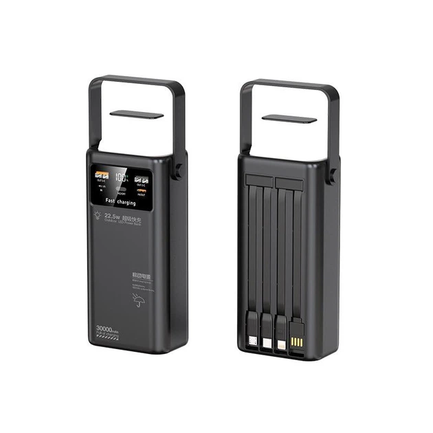 Павербанк PowerBank із швидкою зарядкою та кемпінговим ліхтарем 80000mAh |4USB/22.5W| Чорний