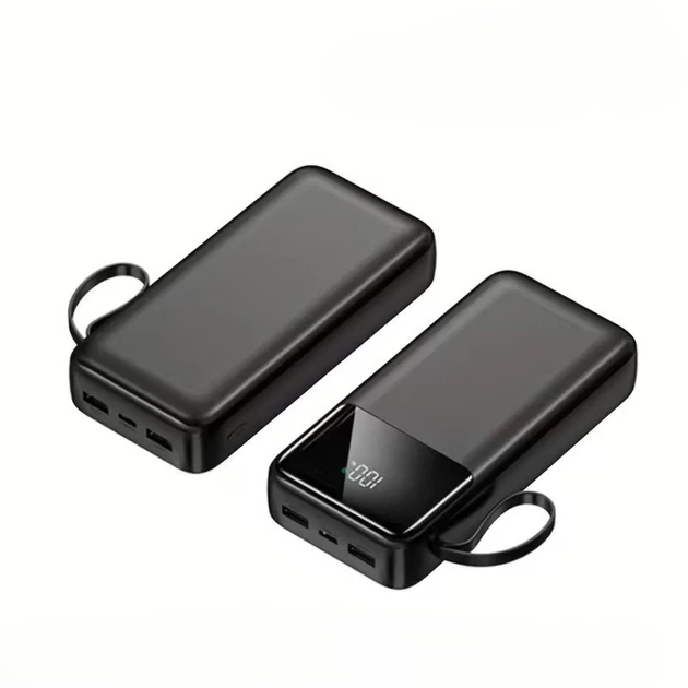 Павербанк 20000 мА·год з LED-дисплеєм, USB + Type-C, компактний зовнішній акумулятор для смартфонів (чорний)