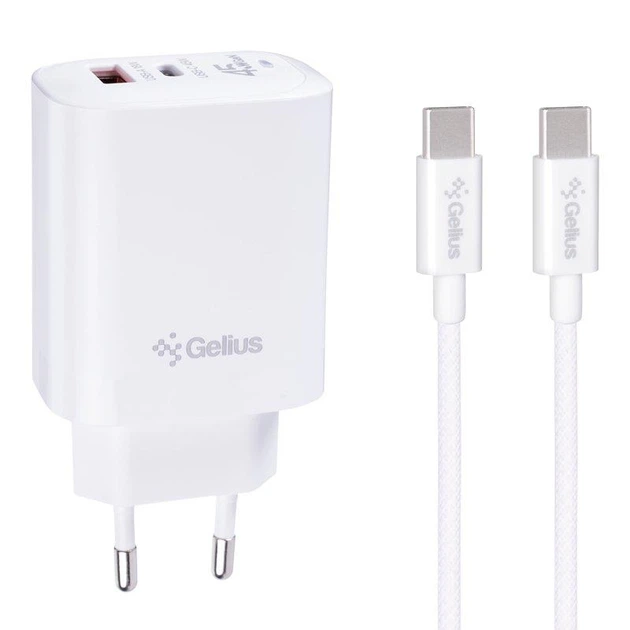 Мережевий зарядний пристрій Gelius Stratus GP-HC068 45W (1Type-C+1USB-A) + кабель Gelius iCable GP-UCN010 Type-C to Type-C (