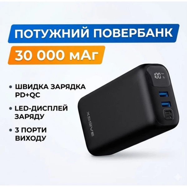 Повербанк XSSIVE 30000 mAh Fast Charge QC/PD з LED дисплеєм XSS-PB23 Чорний