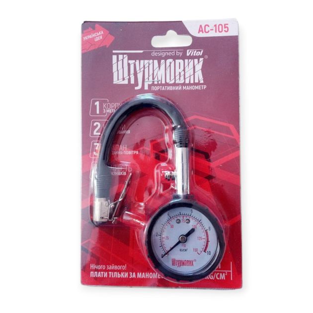Манометр металевий 10 атм, клапан скидання тиску, блістер штурмовик