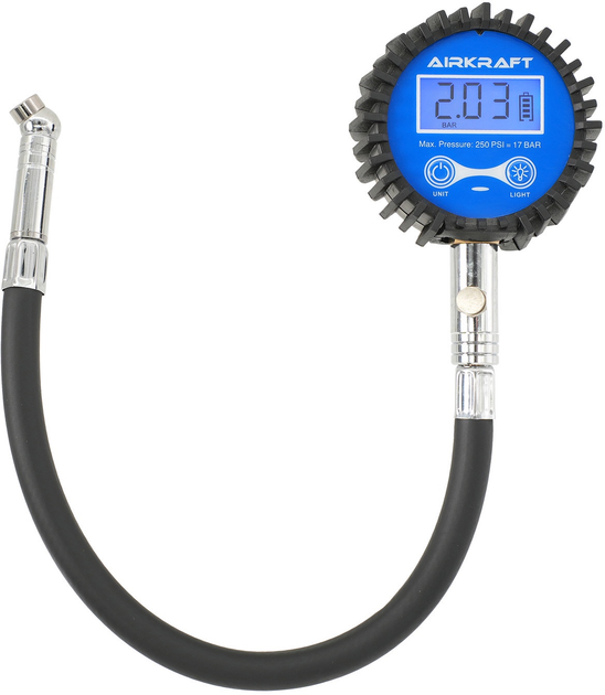 Цифровий манометр Airkraft TPGD0250-S для перевірки тиску в шинах зі шлангом 0-250 psi (17 bar)