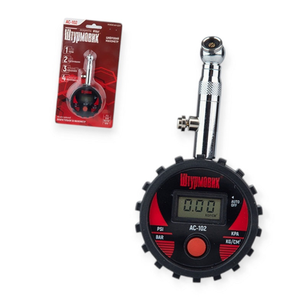 Манометр металевий електронний 7 атм рк-дисплей, led-підсвічування, блістер АС-102 Штурмовик