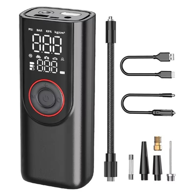 Портативний компресор ATJ-9566 з цифровим манометром і акумулятором 6000 мА·год