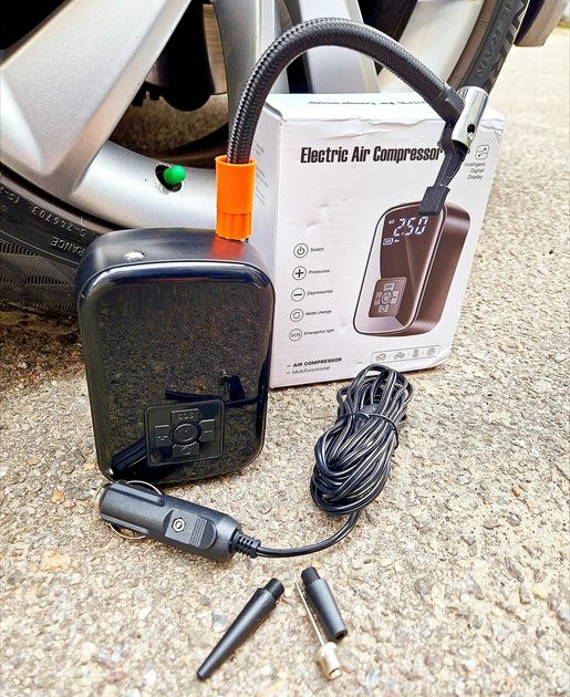 Автомобільний компресор 12 В із цифровим дисплеєм і набором насадок, портативний насос Air Pump 35 л/хв