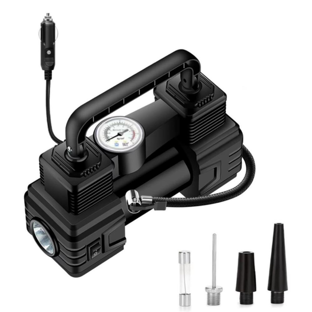 Автомобільний компресор 12В, 150 PSI, 35 л/хв з LED-ліхтарем та автозупинкою чорний