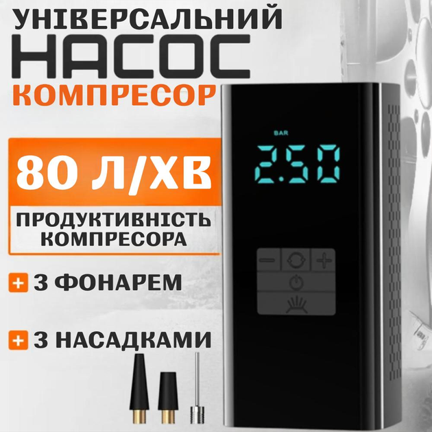 Портативний автомобільний компресор для підкачування коліс, універсальний насос із дисплеєм ЧОРНИЙ!