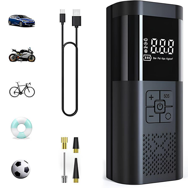 Портативний автомобільний насос 150PSI 12V 6000mAh. Насос-повербанк