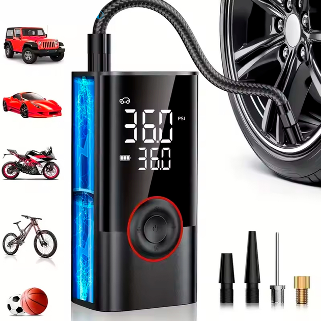 Розумний Автокомпресор Бездротовий Портативний Насос 150PSI з дисплеєм