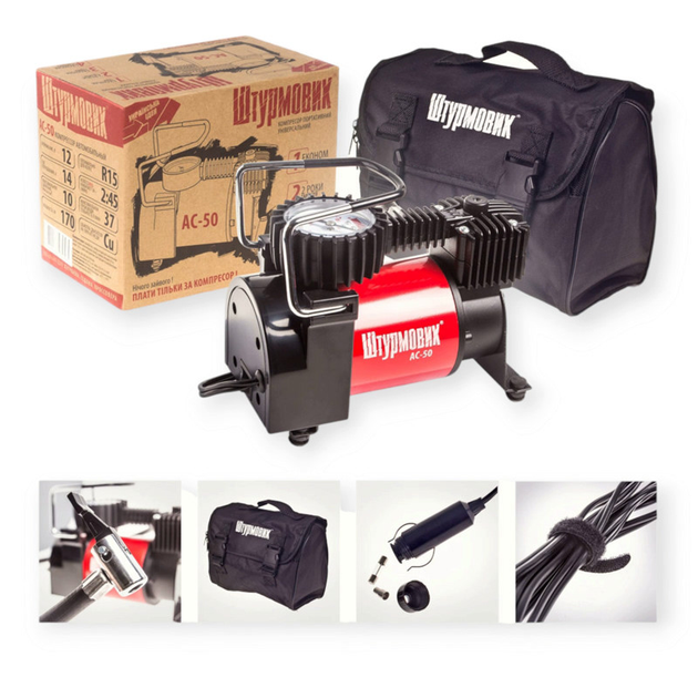 Компресор сила 10атм/37л/1м шланг/прик./сумка/автостоп/2 режими