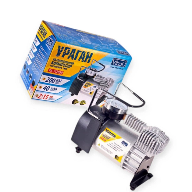 Компресор vitol ураган 10атм/35л/1,2м шланг/прик.-клеми/сумка