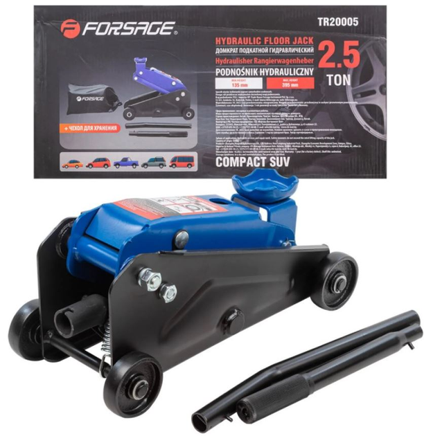 Домкрат гідравлічний підкатний 2,5 т, 135-395 мм (коробка) Forsage