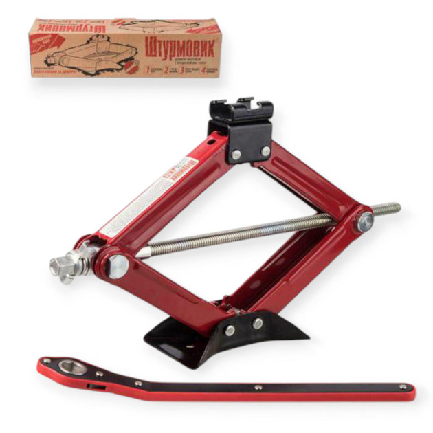 Домкрат ромбічний 1 тонна з коробом і тріскачкою висота підйому 350 міліметрів вага 2,2 кілограма