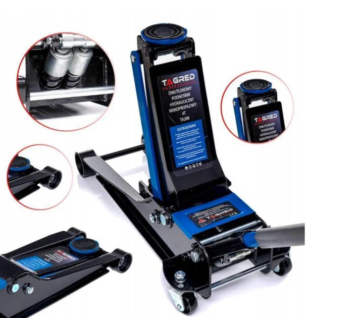Двопоршневий низькопрофільний домкрат 4 т TAGRED колір чорно-синій