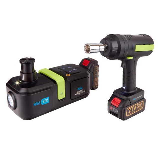 Набір 2 в 1 домкрат електрогідравлічний 2т, 155-450мм + гайковерт 420Nm з 2-ма акумуляторами 21В VITOL HF053