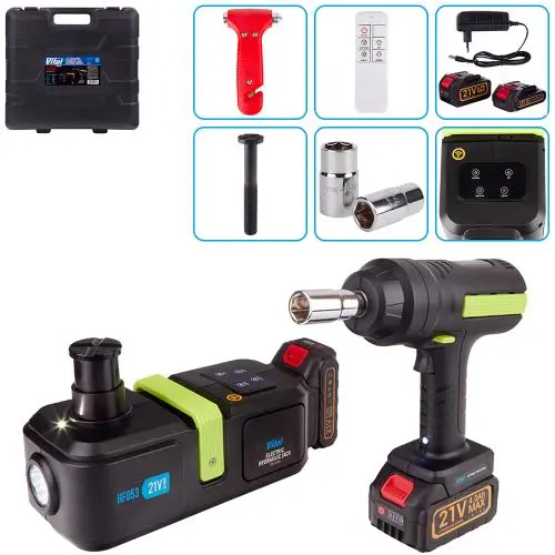 Набір 2в1 Vitol: домкрат електрогідравлічний 2т, 155-450мм + гайковерт 420Nm з 2-ма акумуляторами 21В(HF053)