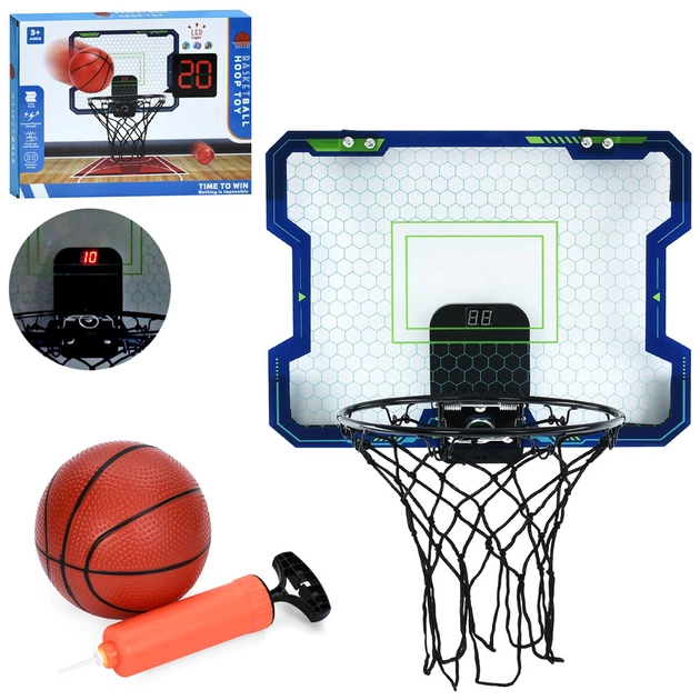 Дитяче Баскетбольне кільце 25 см на щиті 39x28 см з електронним табло, Автоматичний підрахунок очків, м'ячем і насосом