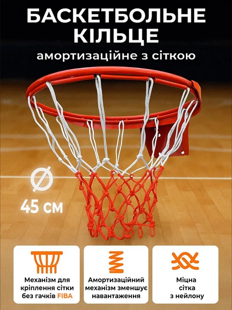Баскетбольне кільце амортизаційне з сіткою для дома вулиці залу Newt FIBA light 450 мм NE-FIBA-12