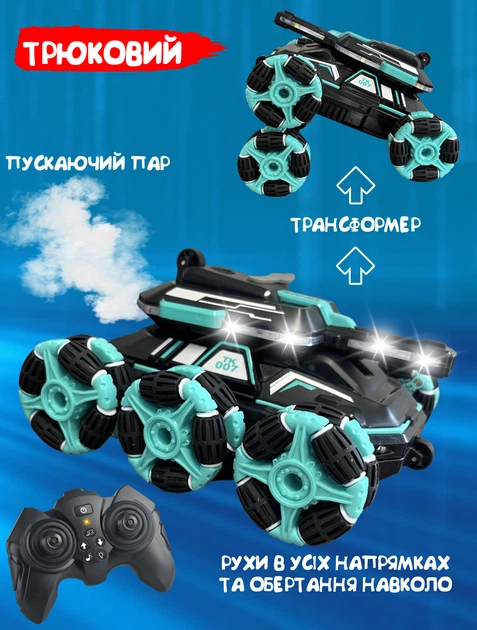 Танк на радіокеруванні пульт 2.4 GHz акумулятор 3.7 V сенсорний браслет стріляє орбізами генерує пару звуки підсвічування ор