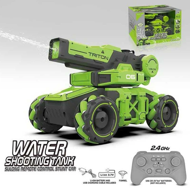 Танк на радіокеруванні що стріляє водою (SL 8014 A) обертання на 360°, ковзання, роликові колеса, тріскачка, лійка