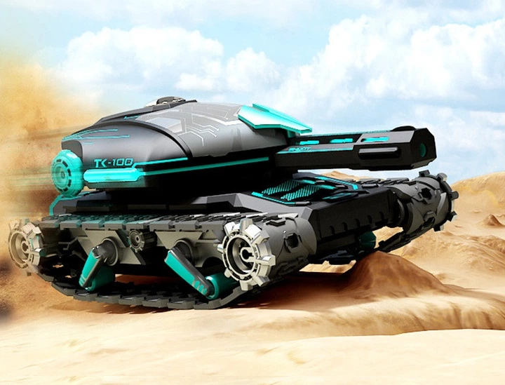 Танк на радіокеруванні з роликовими колесами стріляє орбізами Сірий