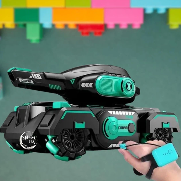 Танк на радіокеруванні з сенсорним браслетом стріляє водою Чорний із синім