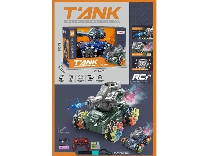 Танк на радіокеруванні 6685 підсвічування, 2 режими: з мелодіями/без звуку, стріляє орбізами, парогенератор, оберти на 360°,
