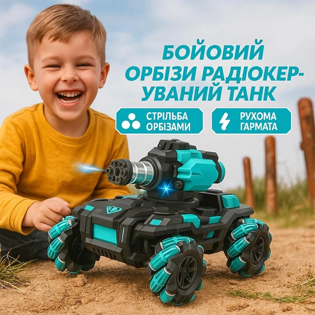 Танк на радіокеруванні 2019-16A стріляє орбізами з підсвічуванням рухомою баштою акумулятор 3.7V пульт 2.4GHz