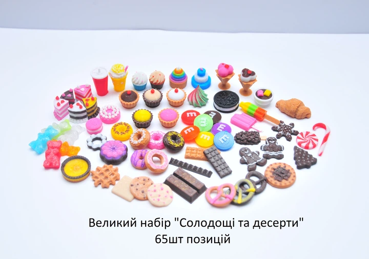 Набір продуктів 65 шт. для ляльки їжа десерти солодкості морозива круасан шоколад кекс цукерки