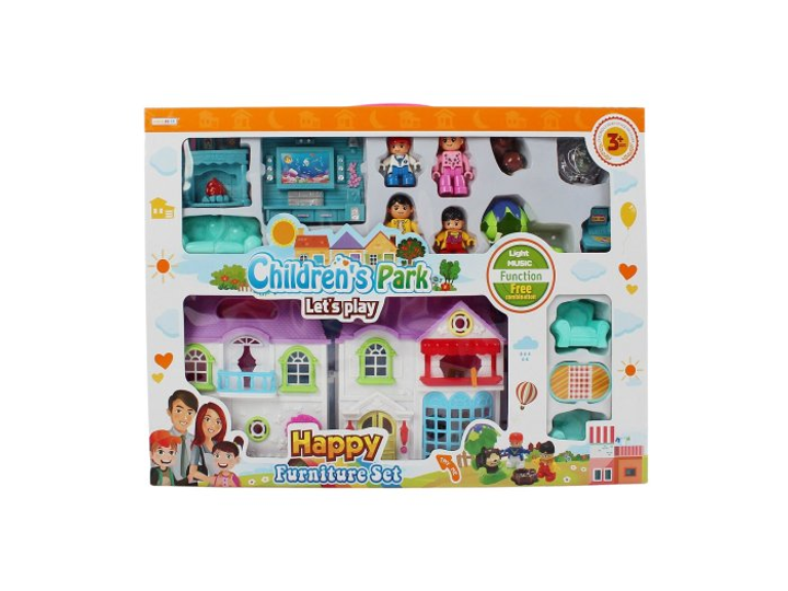 Будиночок LimoToy WD-933A автомобіль фігурка 3 шт меблі музика світло на батарейках у коробці 64-32-8 см.