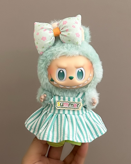 Вбрання для іграшки Labubu з милім бантом Бірюзовий 17см 35249