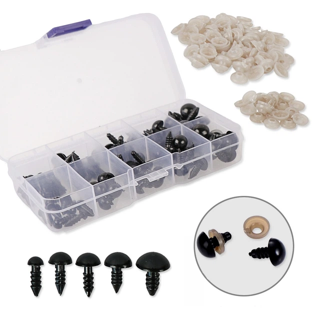 Набір чорних очей на заглушках 5 видів по 10 пар (6,8,9,10,12 мм), органайзер 10 осередків, комплект оченят різних розмірів