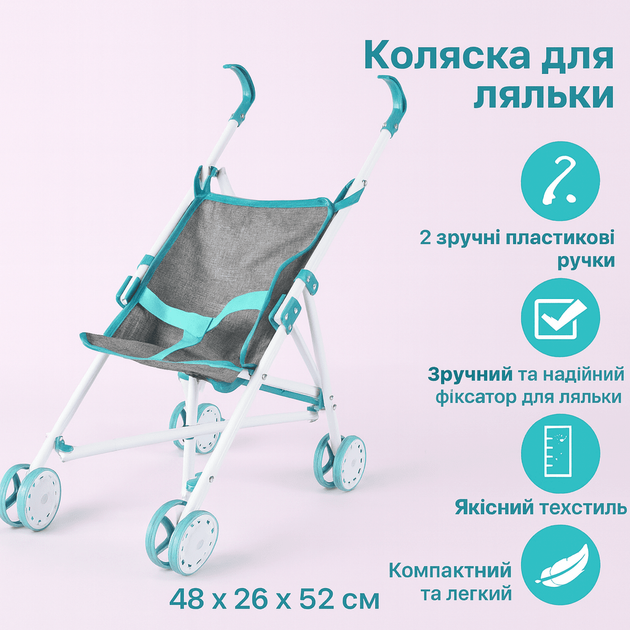 Коляска для ляльки ToyCloud сіро-синя тростинка 910-15