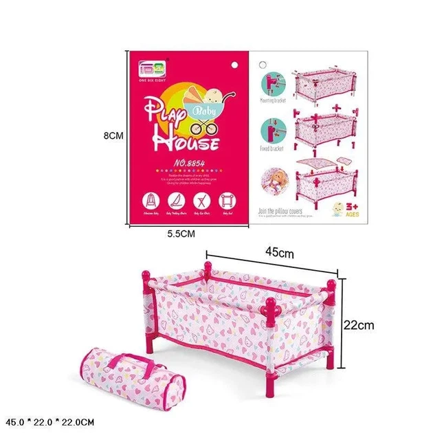 Металеве ліжечко One Six Eight для ляльки до 45см, з аксесуарами та переноскою CS7860