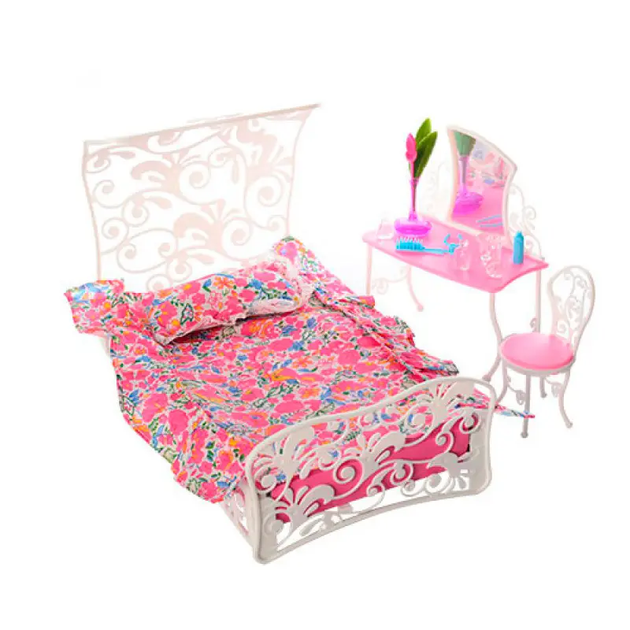 Ігровий набір Меблі для ляльок Барбі Спальня для ляльки меблі лялькове ліжко трюмо стільчик аксесуари "Gloria"
