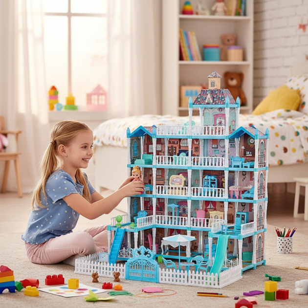 Ляльковий будиночок з підсвічуванням для дівчаток 5 поверхів 14 кімнат іграшковий особняк для гри та творчості