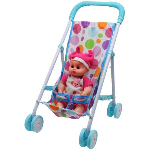 Коляска с пупсом и аксессуарами (голубая)