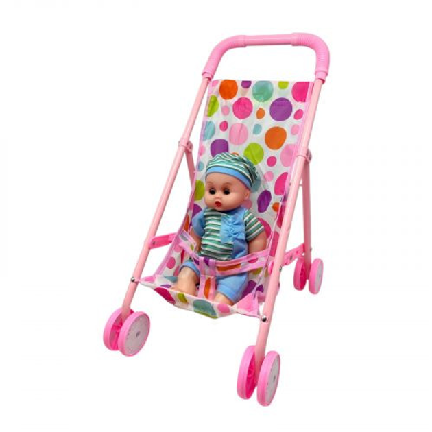 Коляска с пупсом и аксессуарами (РОЗОВАЯ В ГОРОШОК)