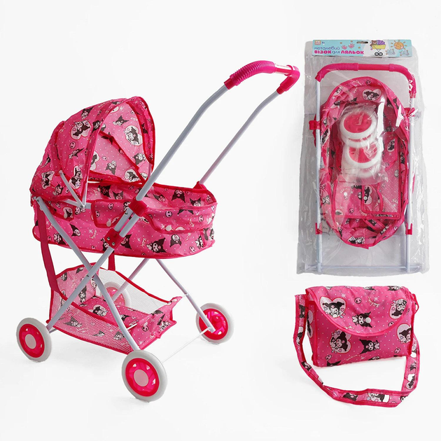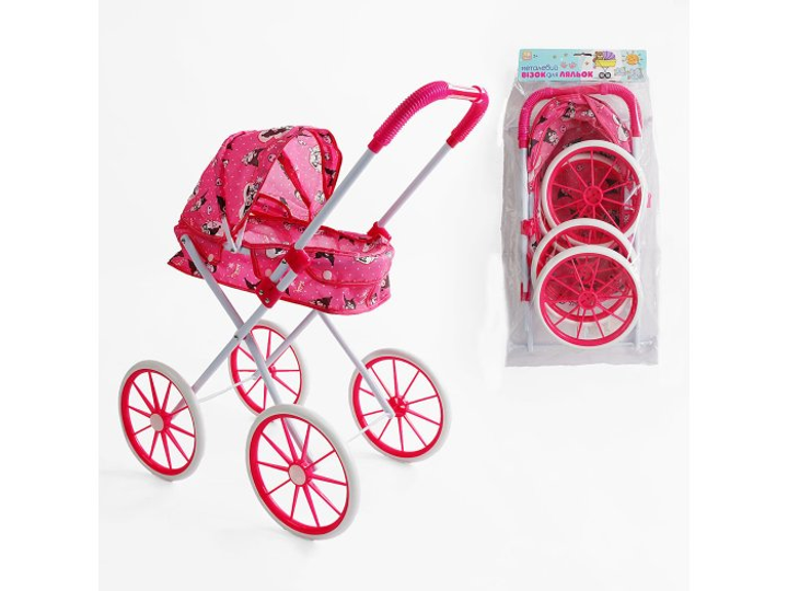 Візок для ляльки TK 55-420 (24/2) "TK Group", складна конструкція, сумочка, кошик, пупс до 45 см, металевий каркас, в пакеті