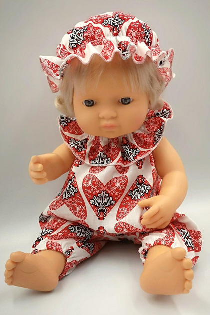Одяг для пупсів зростом 36-38 см - пісочник з панамкою "Серденьки"