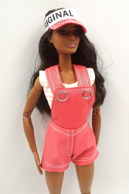Одяг для Барбі - Костюм з кораловим комбінезоном та кепочкою