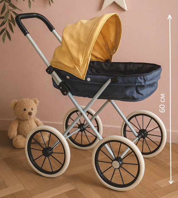 Візок іграшковий для ляльок дитячий синій складний великий 60 х 50 х 30 см пластиковий великі колеса