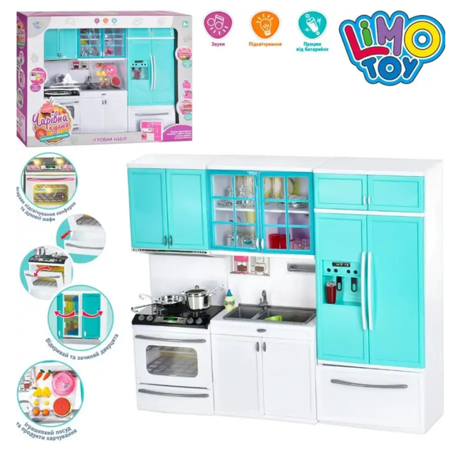 Набір меблів для ляльки з плитою та холодильником Limo Toy QF26210G-1 Іграшкова Кухня зі світлом, звуком та посудом