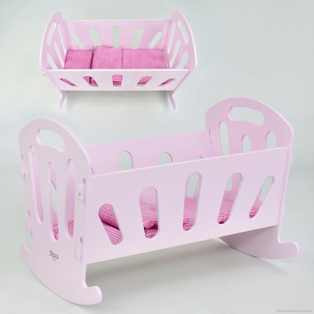 Ліжечко для ляльок + постіль іграшка, іграшкове ліжечко, 36х36х49 см (8001)