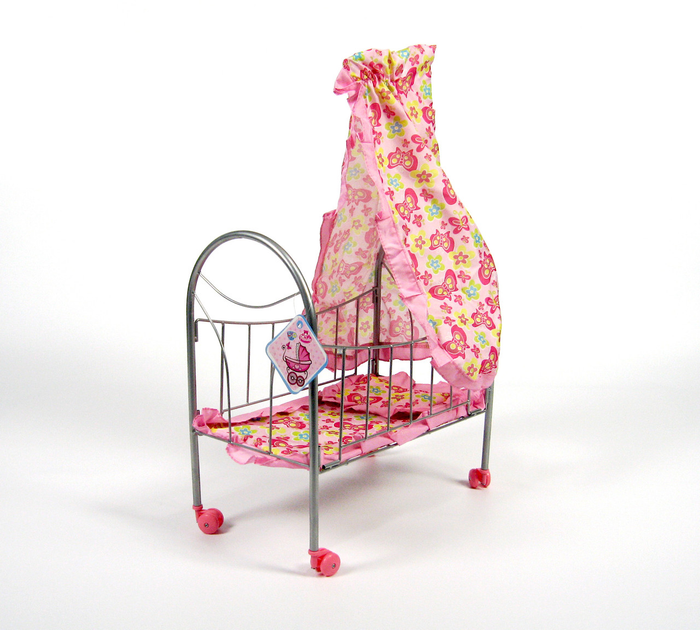 Ліжечко металеве з балдахіном на коліщатках 9394
