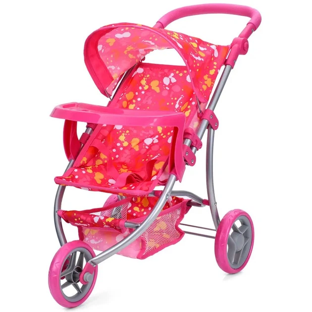 Коляска для ляльки прогулянкова триколісна малинова з плямами (9377B-T-VLP)